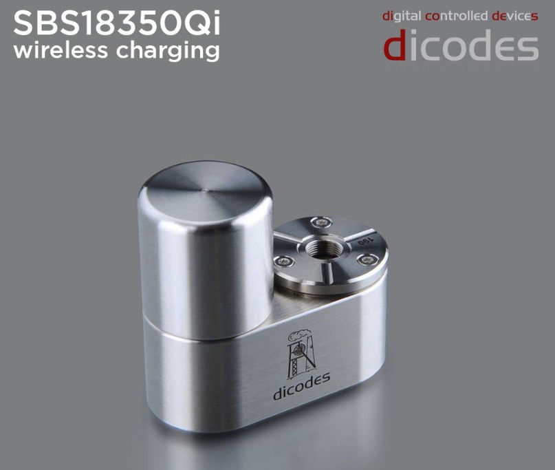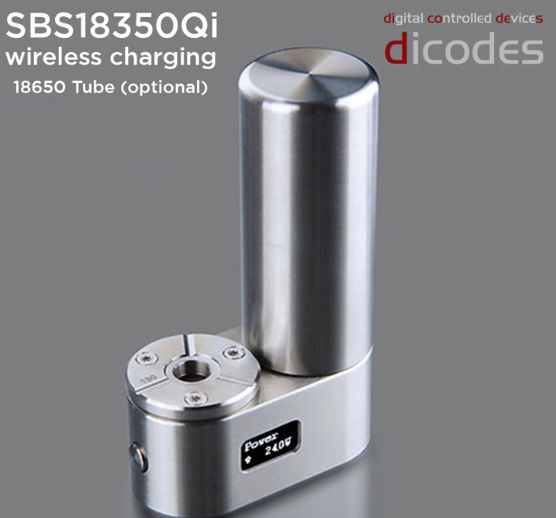 Die Dicodes Dani SBS18350Qi ist wohl eine der kompaktesten Side-by-Side Mods auf dem Markt. Die Dani SBS18350Qi ist ausgelegt für die Nutzung von 1x 18350 Akku (nicht inbegriffen), optional gibt es aber auch noch Akkuhülsen für 18500 oder 18650. Somit lässt sich die Optik entsprechend der Länge des Verdampfers anpassen. Die Dani SBS18350Qi wird über eine Taste bedient, den Feuertaster. Wie schon bei der Extreme V3 kommt auch bei der SBS18350Qi das Single-Button Setup Prinzip zum tragen. Eine Besonderheit der Dicodes Dani SBS18350Qi ist sicher die Möglichkeit den Akku kabellos laden zu können. Entsprechend liefert Dicodes auch gleich ein passendes Ladegerät mit.