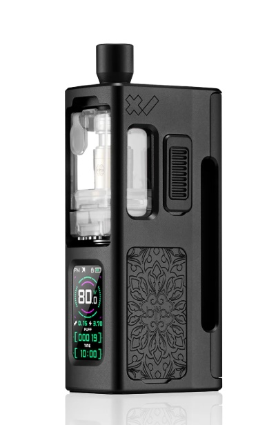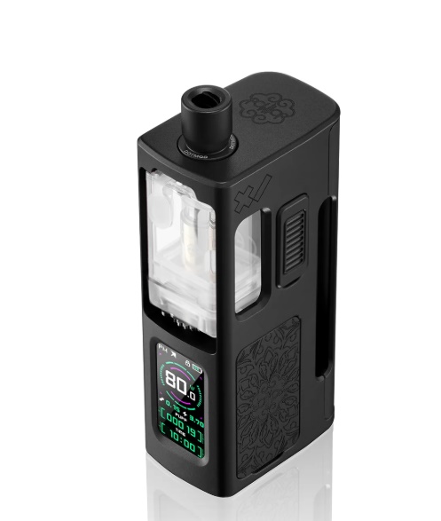 In der DotMod x Mission XV DotApollo kommt der neue Dot Tank V4 zum Einsatz. Dieser bietet nun ein Füllvolumen von 4ml und eine neue Airflow Control. Befüllt wird der neue Dot Tank V4 von vorne, dazu zieht man den Silikon Plug heraus und schon kommt die Füllöffnung zum Vorschein. Als Coils können weiterhin die bekannten DotAIO Coils genutzt werden. Es können aber auch alle bisherigen Dot Tanks und Tanks von Drittanbietern genutzt werden. Die Front des Gerätes ziert das übersichtliche Farbdisplay, der Feuertaster befindet sich an der Seite und kann somit bequem über den Daumen ausgelöst werden. Die Tasten für Plus/Minus und auch der USB Type-C Anschluss verstecken sich jeweils unter den seitlichen Panels.