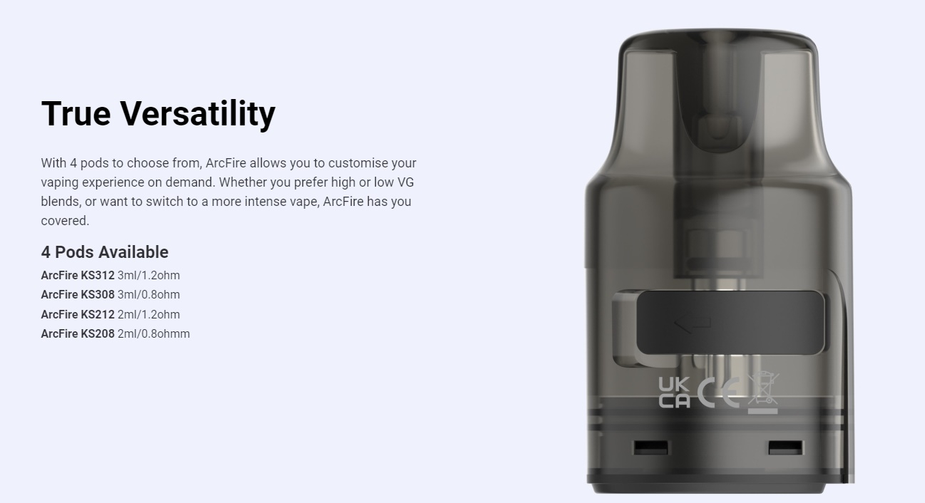Das Innokin ArcFire Pod Kit richtet sich ganz klar an Einsteiger und solche Dampfer, welche es gerne einfach haben. Das kompakte Podsystem wird mit einem 1,2 Ohm Pod mit 3ml Füllvolumen (TPD Version 2ml) geliefert, wobei sich der Pod dank des grosszügigen seitlichen Füllloches einfach befüllen lässt. Der Akku des ArcFire Pods misst 650mAh und wird über den USB Type-C Anschluss geladen. Im Gegensatz zu einigen anderen Podsystemen dient der Taster am Innokin ArcFire nur zum ein- und ausschalten, jedoch nicht als Feuertaster. Denn der ArcFire besitzt nur eine Zugautomatik.