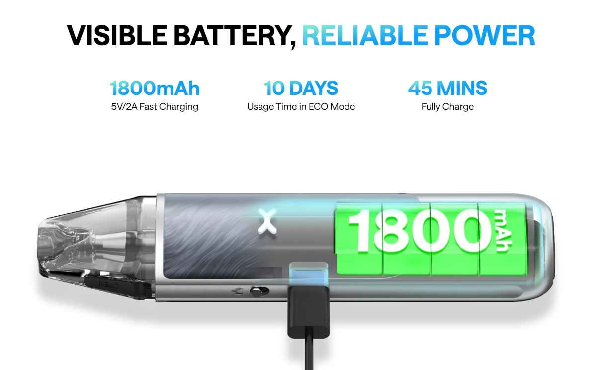 Der Oxva NeXlim Go ist die vereinfachte Version des NeXlim Podsystems von Oxva. Der NeXlim Go richtet sich ganz klar an jene Dampfer, welche auf ein Display und unzählige Einstelloptionen verzichten können und dafür lieber mehr Akku haben. Denn der Oxva NeXlim Go besitzt einen Akku mit 1800mAh, welcher über den USB Type-C an der Seite geladen werden kann. Im NeXlim Go kommen die gleichen Dual-Mesh Pods mit 4ml Füllvolumen zum Einsatz wie schon beim NeXlim.