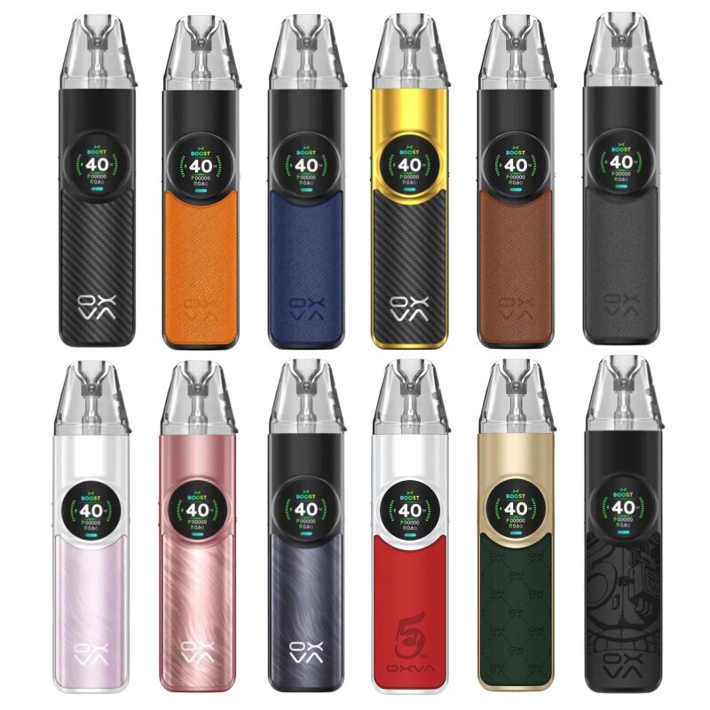 Entdecke das OXVA NeXlim Pod Set, das nicht nur durch seine schlanke, ovale Form überzeugt, sondern auch durch ein hochwertiges Design aus Zinklegierung. Mit edlen Einlagen aus PU-Leder oder Aluminium wählst du aus elf beeindruckenden Farben – von Power Black über Glory Red bis Starry Blue – die deinen individuellen Stil perfekt unterstreichen.