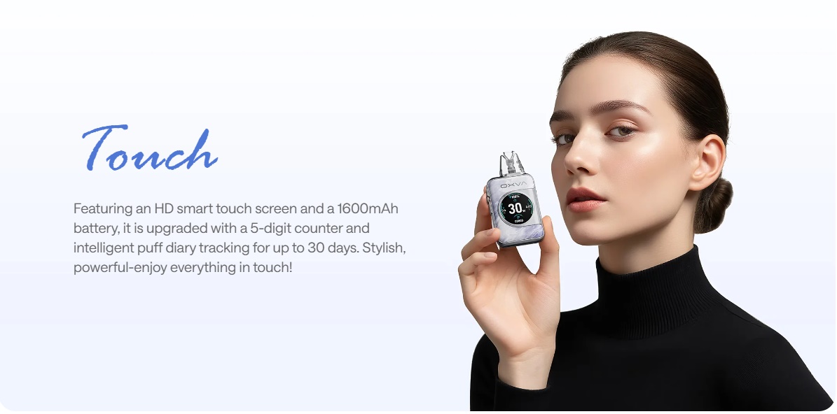 Der Oxva Xlim SQ Pro 2 ist der Nachfolger des beliebten Xlim SQ, welcher durch sein kompaktes Format und dem grossen Akku zu überzeugen wusste. Der Xlim SQ Pro 2 ist dabei nicht einfach nur ein simples Upgrade, Oxva spendiert dem SQ Pro 2 einige neue Features. Das wohl auffälligste Feature ist das 1,09" grosse Touchdisplay, welches in 316PPI mit 60Hz auflöst. Dadurch ist das Display sehr zügig ansprechbar und lässt sich einfach bedienen. Ein weiteres Feature ist der Puff Counter, welcher nicht einfach nur alle Züge darstellt, sondern man jetzt sehen kann wieviele Züge man am Tag, in 7 Tagen, in 30 Tagen und im Gesamten gemacht hat.