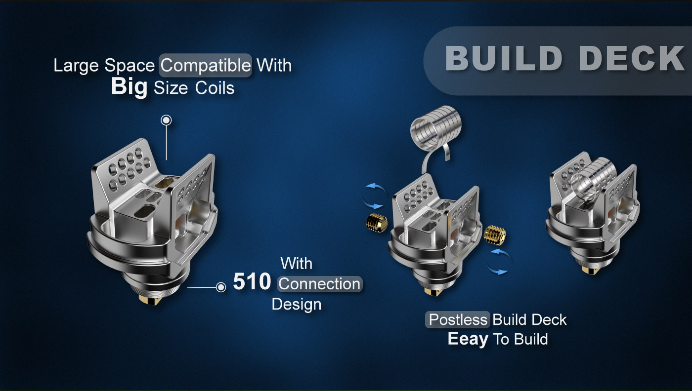 Zum anbringen und ausglühen der Coil benötigt man beim Blaze Boro Tank keinen Adapter, an der RBA selbst befindet sich ein 510 Gewinde. Der Tank des THC Blaze Boro Tanks fasst 4ml Liquid und lässt sich von zwei Seiten her befüllen (Front und Seite). Somit lässt sich der Tank bei den meisten Boro Mods im eingebauten Zustand befüllen. An der Unterseite der Base befindet sich die Airflow Control, über welche man den Zugwiderstand noch feiner abstimmen kann. Nutzt man die RBA jedoch in einem regulären Boro Tank, dann muss man auf die Airflow Control vom Tank verzichten und kann den Zugwiderstand nur über die 4 Pins realisieren.