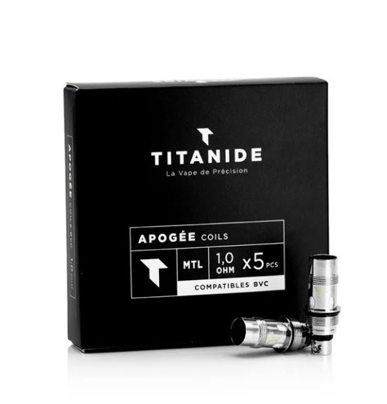 Die Titanide Apogée Coils hat der französische Hersteller extra für den Apogée MTL Tank entwickelt. Die BVC Coils werden in zwei Widerständen angeboten, mit 0,6 Ohm (20-30W) für RDL oder mit 1,0 Ohm (15-25W) für MTL. Als Wicklung kommt eine Spule aus Kanthal zum Einsatz. Die Titanide Apogée Coils können auch im Nautilus und und im Cosmo Verdampfer genutzt werden.