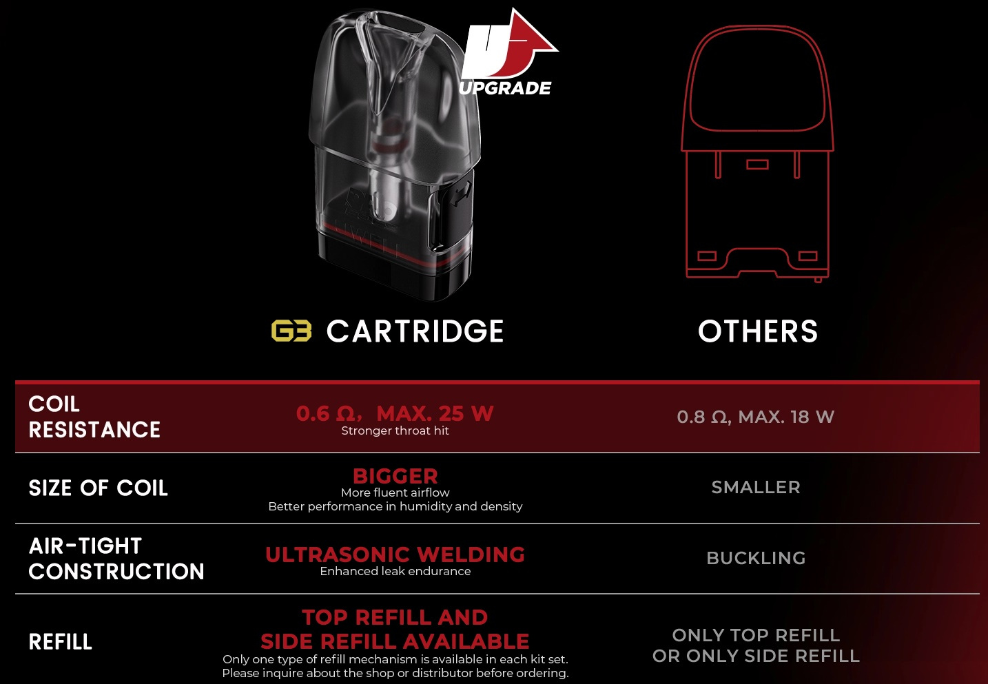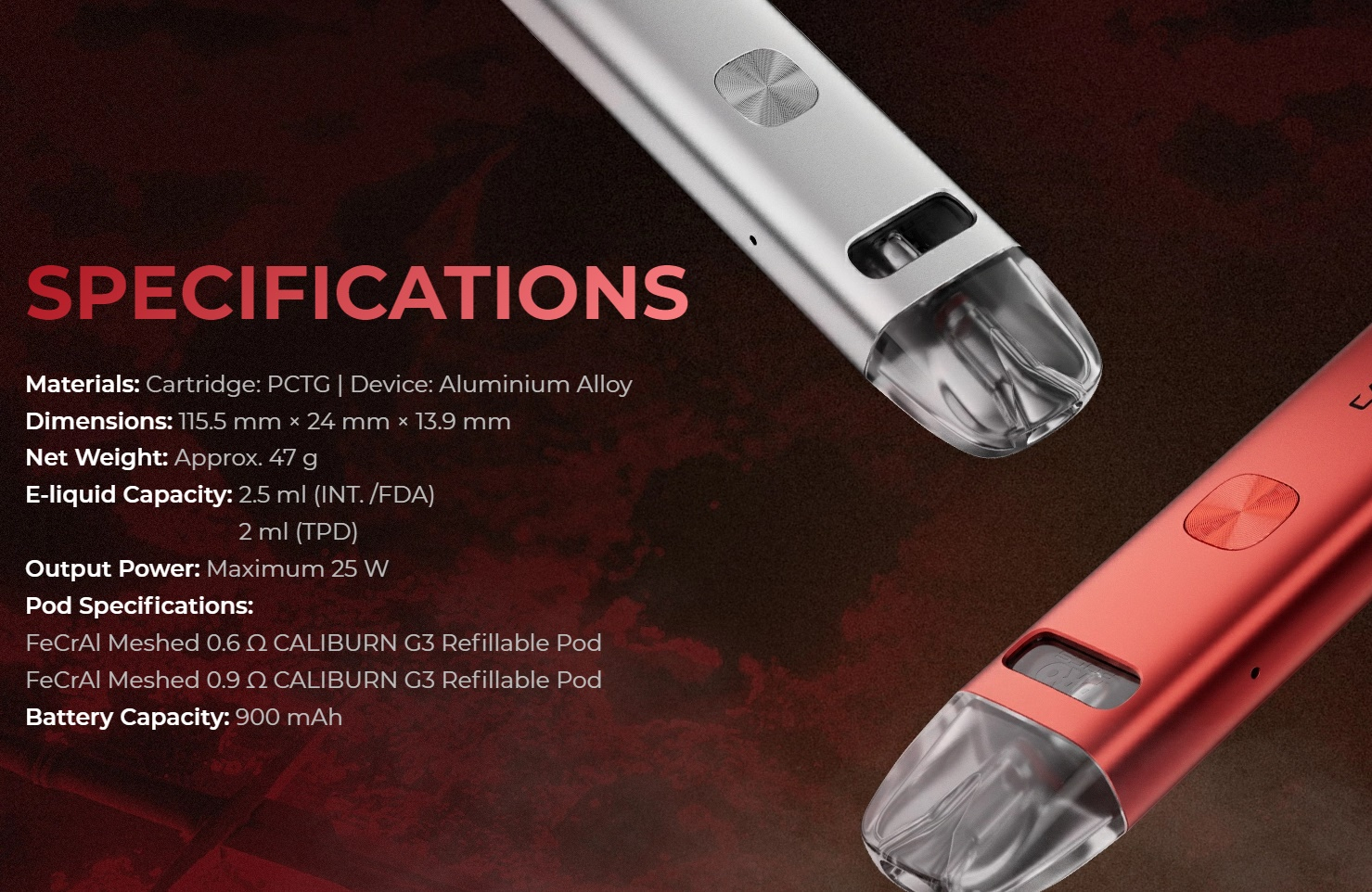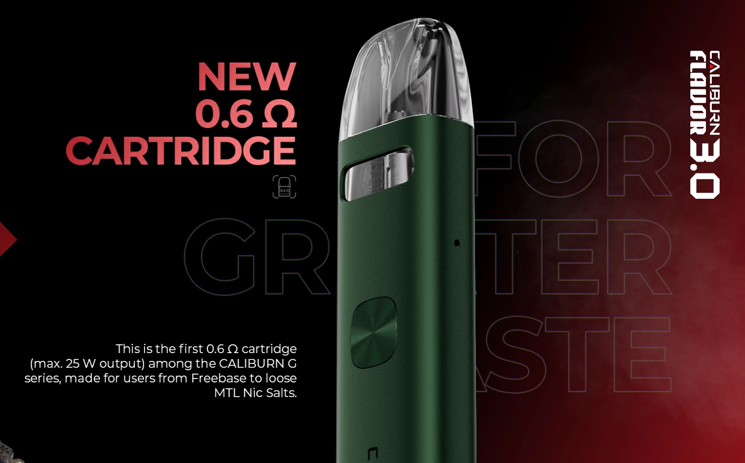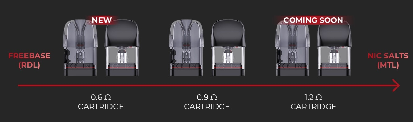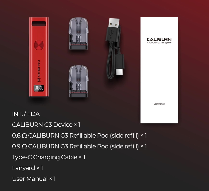 - neue Caliburn G3 Pods mit 0,6 Ohm, 0,9 Ohm und 1,2 Ohm (bald erhältlich)