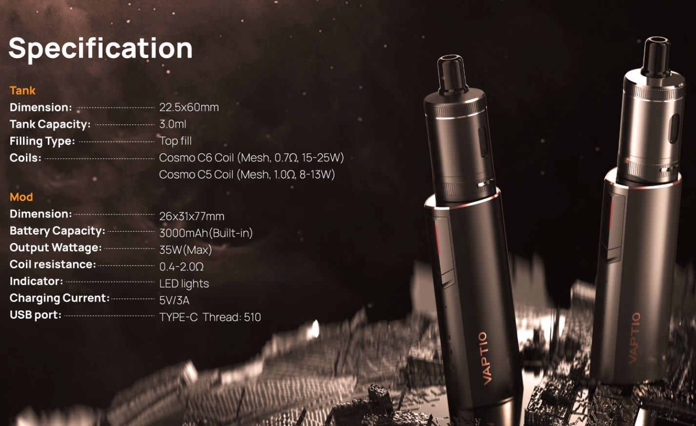 - Vaptio Cosmo 2 Plus Mod Akkuträger: