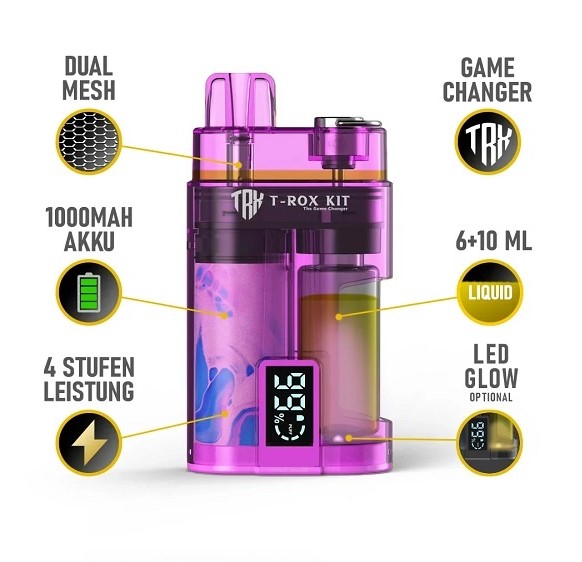 Entdecken Sie das T-Rox Kit von VoVan, das innovative Pod-System, das sowohl Einsteigern als auch erfahrenen Dampfern ein herausragendes Erlebnis bietet. Das T-Rox Kit setzt neue Maßstäbe in der Welt der Dampftechnologie und kombiniert Leistungsfähigkeit, modernes Design und Benutzerfreundlichkeit in einem kompakten Format.