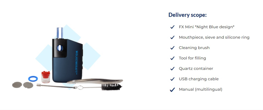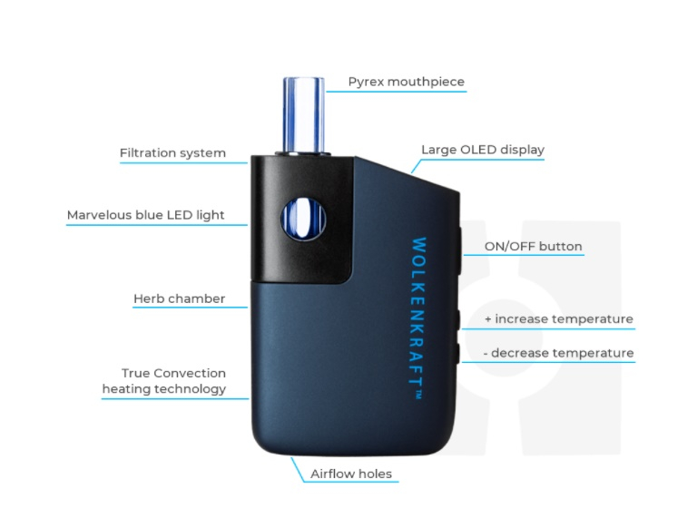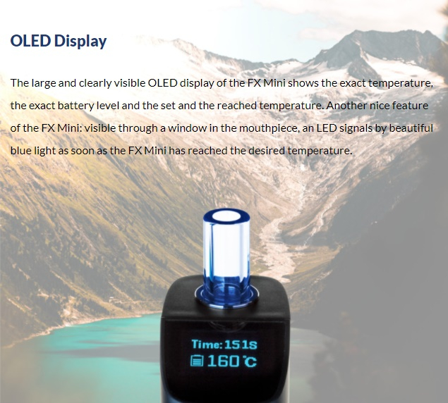 Der Wolkenkraft FX Mini nutzt die True Concection Erhitzungstechnologie, welche sehr effizient arbeitet. Der Vaporizer heizt sich innert 30s auf die zuvor festgelegte Temperatur auf, wobei diese präzise im Bereich von 160°C bis 221°C eingestellt werden kann. Und dank des Mundstückes aus Pyrex erhält man einen unverfälschten Geschmack beim verdampfen.