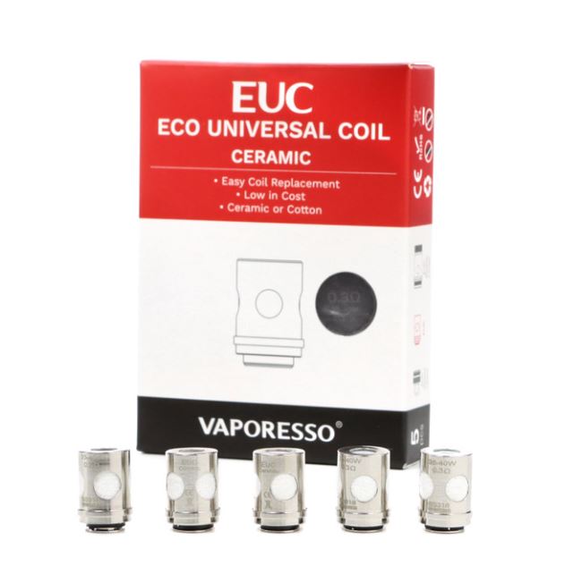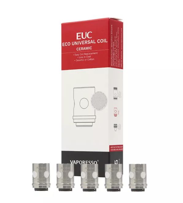 Die Vaporesso EUC Verdampferköpfe eignen sich unter anderem für den Vaporesso Veco Tank. Aus Sicht von Vaporesso sollen die EUC Verdampferköpfe ein besseres Preis-/Leistungsverhältnis bieten als herkömmliche Verdampferköpfe. In den normalen EUC kommt jeweils ein Clapton Draht zum Einsatz, während in den Ceramic EUC jeweils ein SS316 Draht genutzt wird und diese so TC-fähig macht. Neu auch mit Meshed-Coil.