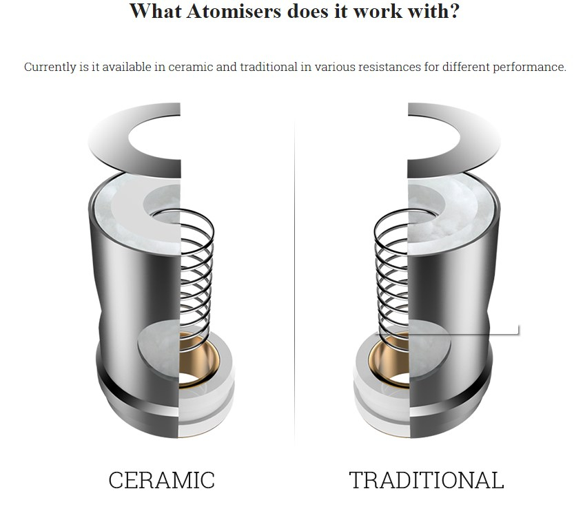 | Coilwiderstand: | EUC 0,3 Ohm, EUC 0,3 Ohm Ceramic, EUC 0,4 Ohm, EUC 0,5 Ohm, EUC 0,5 Ohm Ceramic, EUC 0,6 Ohm Meshed, EUC 1,0 Ohm CCELL |