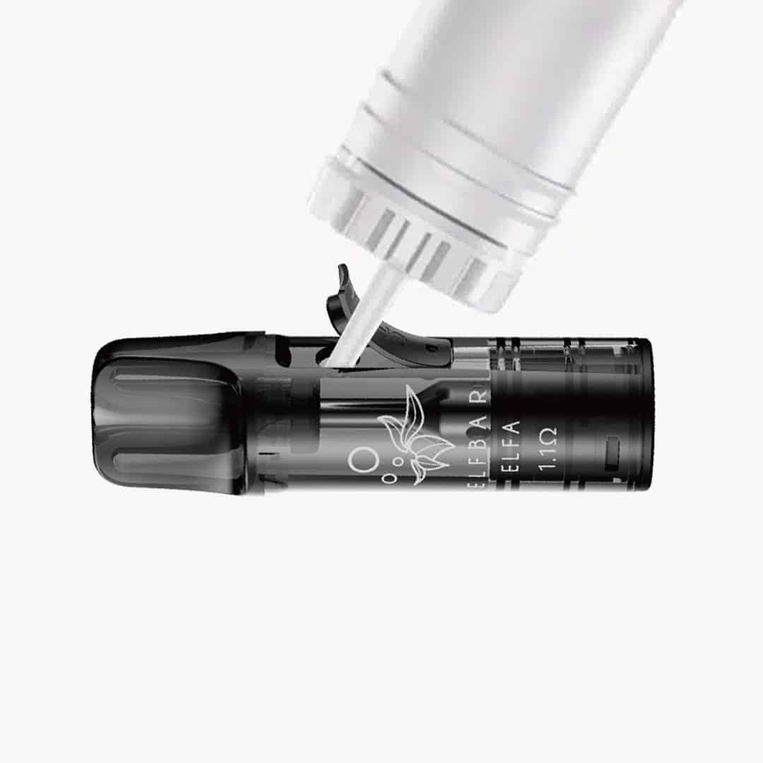 Der nachfüllbare ELFBAR ELFA Pod ist die flexible Lösung für alle Fans des ELFA Systems, die ihr Lieblingsliquid verwenden möchten. Einfach seitlich den Silikonstöpsel öffnen, mit bis zu 2ml E-Liquid befüllen und der integrierte 1.1 Ohm Coil sorgt für ein intensives Dampferlebnis. Mit transparentem Design zur schnellen Kontrolle des Liquidstands und dem Hinweis, nach dem Befüllen 5–10 Minuten zu warten, wird ein „Burn-Hit“ sicher vermieden. Besonders in Kombination mit ELFLIQ Liquids erhältst du ein Dampferlebnis, das dem von Prefilled Pods entspricht.