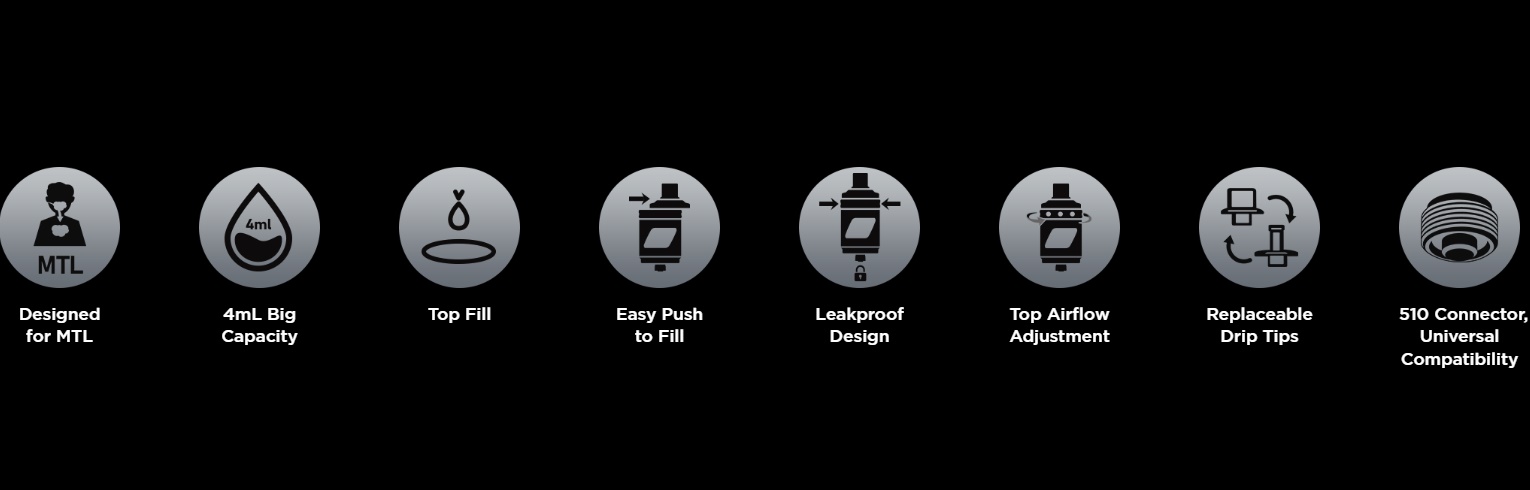 - Coils im Lieferumfang: 0,8 Ohm MTL, 1,2 Ohm MTL